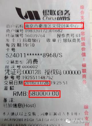 这究竟是一次什么交易,竟然一下刷卡68万元 毕竟,68万元对很多家庭来说都是一笔不菲的大数目,文女士随后翻出手机中的一张照片给记者看。