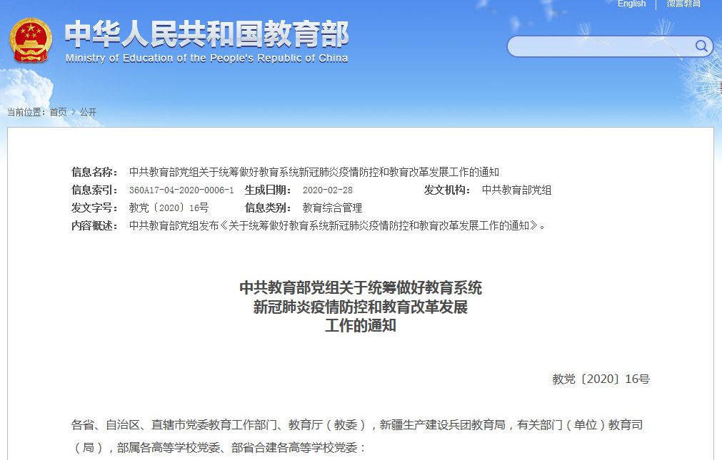 新冠肺炎疫情防控和教育改革发展工作的通知