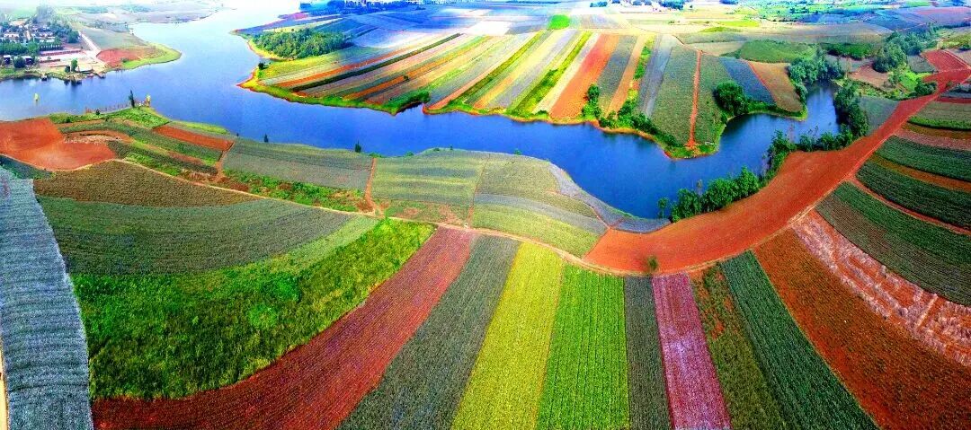 从空中俯瞰,红色的土壤