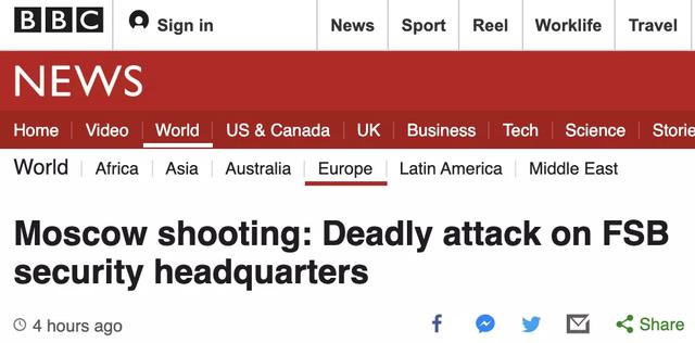 据英国BBC报道,当地时间19日晚,位于莫斯科市中心的俄罗斯联邦安全局(FSB)总部发生枪击案,造成至少1人死亡,5人受伤。另有俄罗斯媒体称,该袭击已造成3人死亡。俄联邦安全局称,枪手已被“制服”。