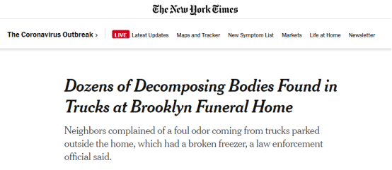 (《纽约时报》:在布鲁克林一家殡仪馆外,卡车中发现数十具正在腐烂的尸体)