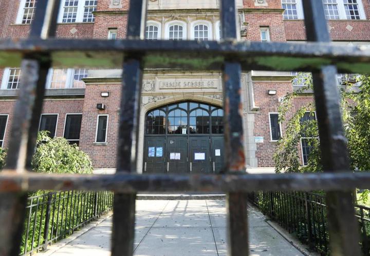 9月1日,美国纽约一所公立学校的大门紧闭。新华社记者王迎摄