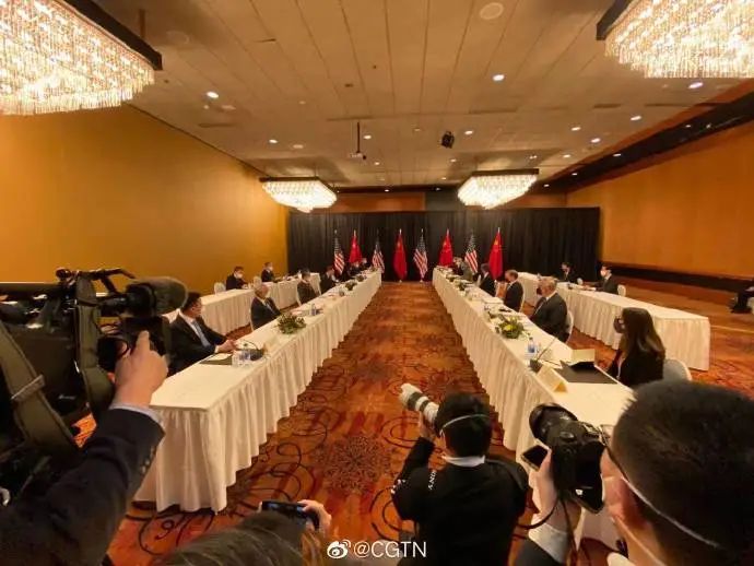 当地时间3月18日,中共中央政治局委员、中央外事工作委员会办公室主任杨洁篪、国务委员兼外长王毅在安克雷奇同美国国务卿布林肯、总统国家安全事务助理沙利文举行中美高层战略对话。