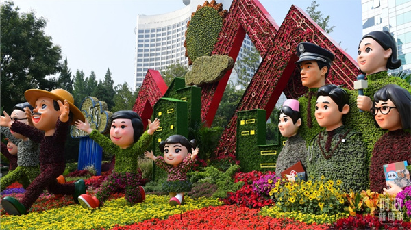 △北京长安街沿线主题花坛——“万众一心”花坛。(图/视觉中国)