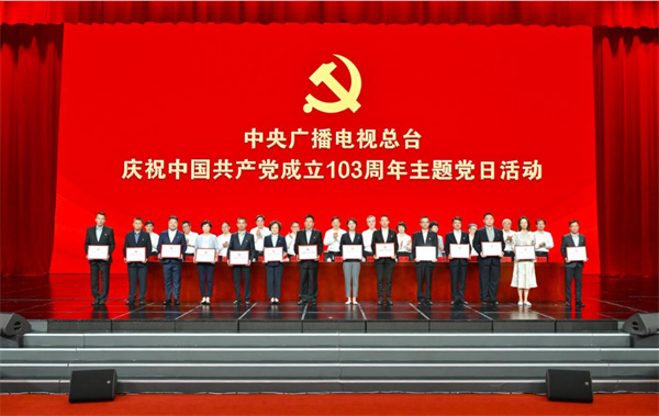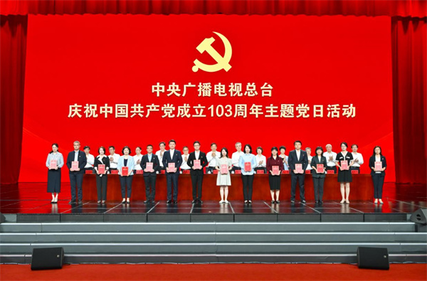 央视网消息:7月1日上午,中央广播电视总台隆重举办庆祝中国共产党成立103周年主题党日活动。中宣部副部长、中央广播电视总台党组书记、台长慎海雄与党员干部重温入党誓词、新党员庄严宣誓,为总台获得“光荣在党50年”纪念章老党员代表颁发纪念章,并作主题讲话。中央和国家机关工委宣传部一级巡视员马莉、中央纪委国家监委驻中宣部纪检监察组副组长陈桂林到会指导。总台党组成员、副台长王晓真主持会议,总台党组成员、副台长胡劲军宣读总台党组《关于表彰中央广播电视总台“四好”党员、“四强”党支部的决定》。总台党组成员、副台长邢博,总台党组成员、副总编辑范昀,总台编务会议成员姜文波、李挺、刘晓龙、齐竹泉、周振红,总会计师董为民出席活动。
