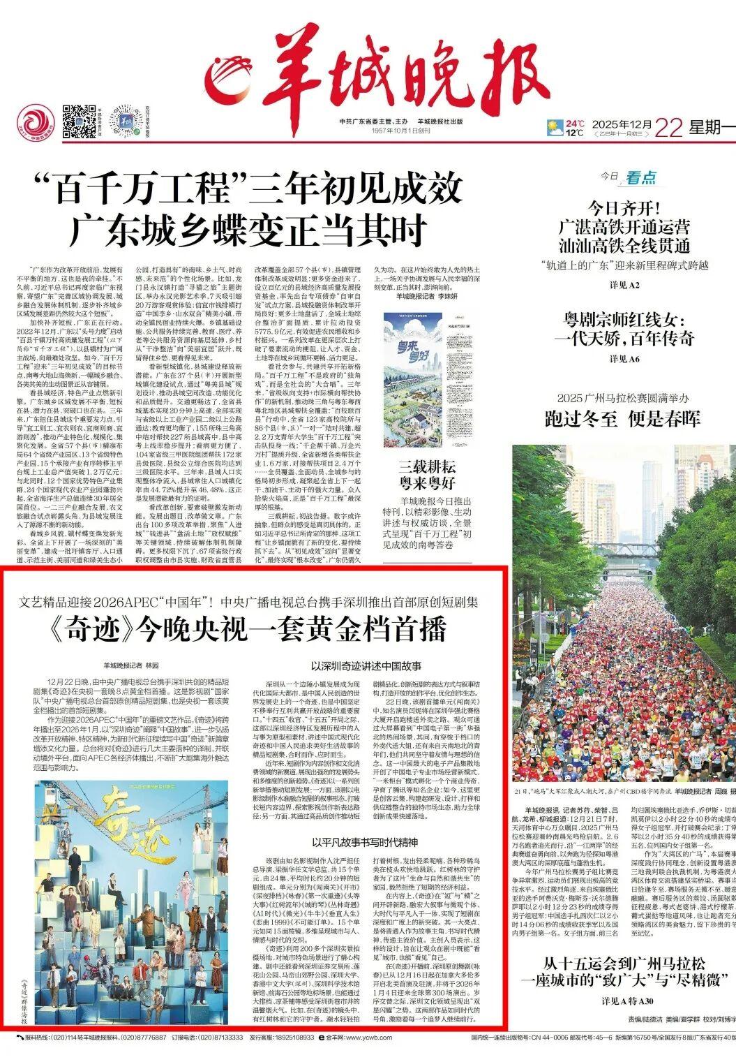 此外,2025年是深圳经济特区成立45周年。《奇迹》用短小精悍的短剧集形式,回溯深圳45年来从小渔村到国际化都市的发展巨变。2026年,亚太经合组织(APEC)第三十三次领导人非正式会议将在深圳举行,这部以深圳经济特区发展历程中的人与事为原型和素材、讲述中国式现代化奇迹和中国人民追求美好生活故事的精品短剧集,也将开启2026APEC中国年“深圳之约”的文艺序章。