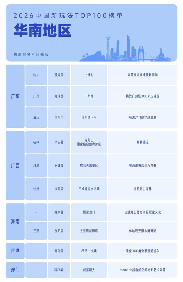 在全国TOP100榜单中,广东多个玩法入选,涵盖极限、沉浸、非遗、自然等维度。广东在新玩法时代进行了如下探索: