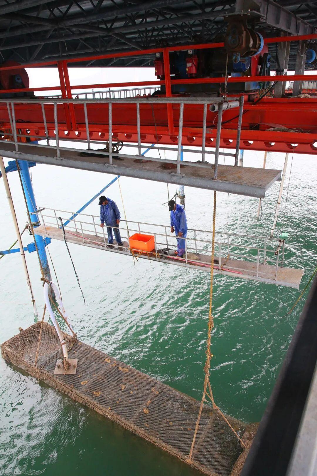 创新是为了突破桎梏。“航宁一号”所在的长屿岛附近,全年8级以上风力天数占一半以上,桩基桁架式是因地制宜的选择。平台底部采用桩基固定,顶部通过桁架结构连成整体,四周设置护栏与走道,还创新性地架设了可操作行车吊臂,专门吊放集装沉箱,养殖水体超过3万立方米,年产量350吨,年产值可达6500万元。