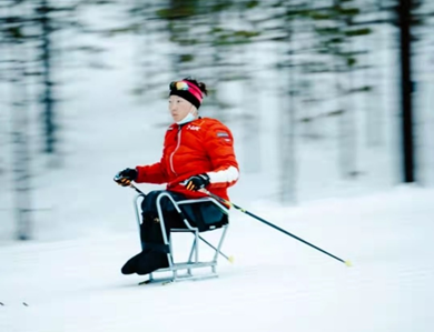 来自杭州的李盼盼,因先天原因导致下肢残疾,常年依靠轮椅生活。她曾先后入选浙江残疾人射箭队、浙江残疾人自行车队,2018年再次转项进入浙江残疾人越野滑雪队,并于同年入选中国国家残疾人越野滑雪队,曾在第十、第十一届全国残运会越野滑雪比赛中获得铜牌。参加残奥会、为国争光,是李盼盼一直以来的梦想。