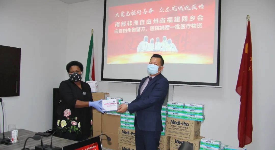 自由州卫生厅David Motaung博士感谢石钦平会长和自由州福建同乡会的慈善捐赠,他表示,今天对于我和卫生厅副厅长来说是令人难忘的一天,疫情当前,如总统拉马福萨所说,社会各界需要共同努力解决这一问题。他还表示,自由州省的新冠肺炎疫情非常严峻,这些物资对于当前来说十分重要,他也特别的希望同乡会能够筹集更多医疗物资来支援医院。