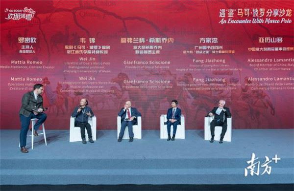5月3日、4日,原创歌剧《马可·波罗》复排演出期间,以“欢朋满粤——遇‘鉴’马可·波罗”为主题的非遗作品展览、分享沙龙在广州大剧院举行,以多种形式搭建中国与意大利文化交流的舞台,传递中意友谊。